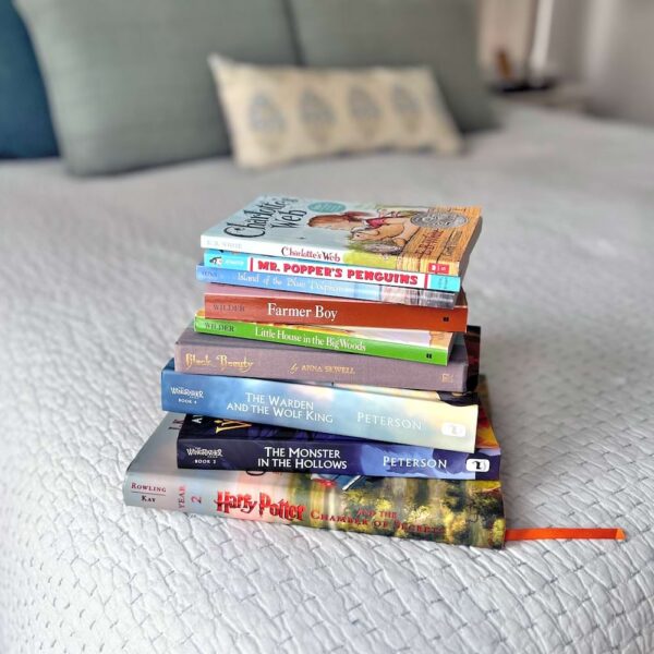 When June heads to summer camp, Shep and I will dig into Harry Potter and the Chamber of Secrets. (I don’t know what we’ll do when Shep goes to camp, too, but right now June’s two-week absence aligns well with his birthday!) John will read them the third Wingfeather before Annie joins read aloud upon her entrance into kindergarten (!). With the newest member of our crew, we’ll circle back around to where we started our readaloud journey: with the first book in the Little House series (it’s been four years since June read them) and with Charlotte’s Web, a book I think every child should have read to them at least once.