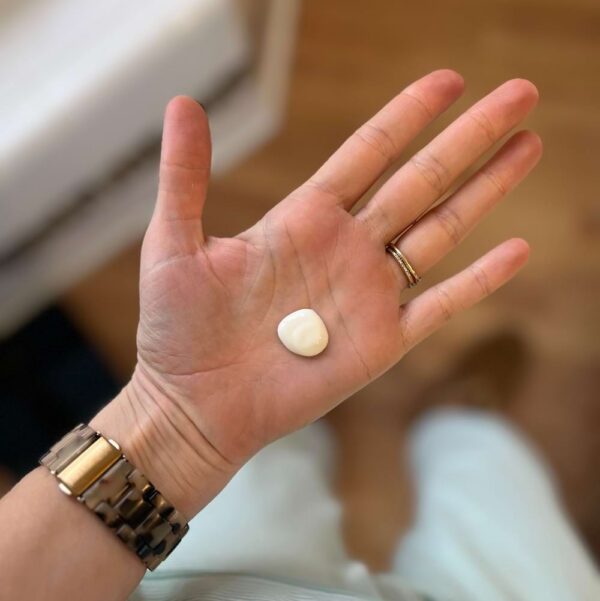 I have used many different vitamin Cs over the years — Mad Hippie, Timeless, Biossance, Barefaced — and have never really been able to tell a difference between them. I tend to try something new each time I have to restock. Whatever I’m using, I apply a few drops with my fingers and blend it in all over my face and neck, then wait for it to dry before putting on the next layer…
