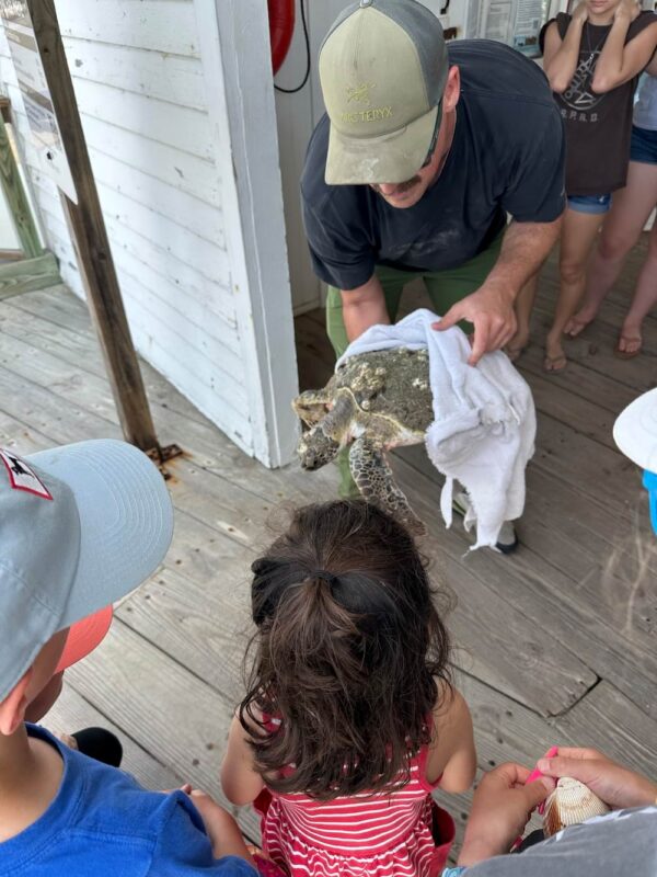 We also got to see a sea turtle rescue in progress! This gal was being carted off the island after being found with too many barnacles on her shell. They were taking her to the Georgia Sea Turtle Center, which we’d visited!