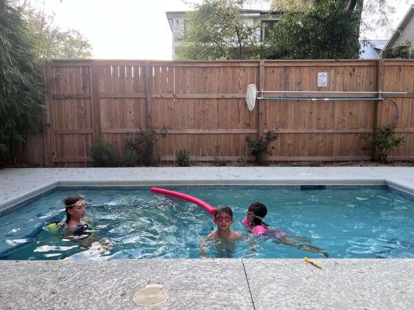 After finding all 11 Spirits (and playing some hoops on the basketball court in the park near the last one), we triumphantly rode back home. We swam in the backyard pool for about an hour before quick showers and changing for dinner.
